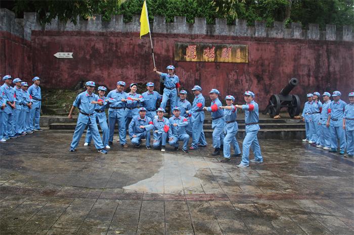 “七一”前夕,城投集团全体党员身穿红军装,头戴红军帽,腰系红军带,分乘两部大巴,雄赳赳气昂昂前往鹰扬关。