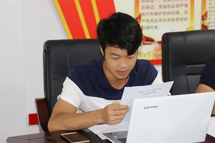 会上,团支部书记邹帅传达学习共青团中央以及贺州团市委关于深入开展学习领会习近平总书记“7.2”重要讲话精神切实抓好团的十八大精神学习宣传贯彻工作有关文件精神。会议通过观看PPT、视频以及团员青年代表朗诵习近平重要思想方针理论,深入学习团的十八大精神。几位团员青年们代表们分段朗诵了习近平总书记在“7.2”上的重要讲话精神,展现了实业公司团员青年们的激情与风采。