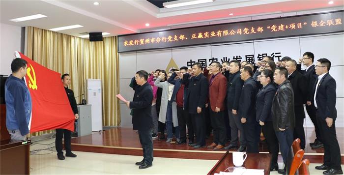12月24日,广西贺州市正赢实业投资开发有限公司党支部和中国农业发展银行广西贺州分行机关党支部在中国农业发展银行广西贺州分行举行了“党建+项目”银企联盟签约仪式暨“贷动未来,共筑双赢”主题活动。贺州市市长助理、农发行贺州市分行党委书记、行长毛家才,贺州城投集团副总经理、实业公司党支部书记、执行董事柳国忠等出席仪式。