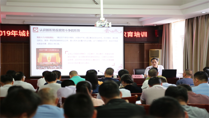 为全面提升工程项目管理水平,增强廉政风险防范意识,提高反腐倡廉能力与水平。2019年4月29日,城投集团在七楼大会议室举办工程管理人员业务知识及廉洁自律教育培训。集团安全管理人员、法务审计人员、工程技术人员等相关业务人员80人参加了培训。本次培训由市城投公司高级工程师黄彬、贺州市纪委驻贺州市国资委纪检组组长陈开铿主讲。培训内容包括工程管理理论知识、工程管理人员廉洁教育等知识。