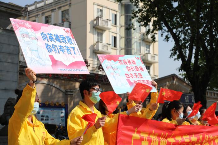 自新冠肺炎疫情发生以来,贺州市共派出33名医护骨干和1名防疫专家紧急驰援湖北开展医疗救治工作。他们带着贺州市委、市政府的嘱托和关怀,带着家乡246万人民的牵挂和关心,义无反顾投身抗击疫情第一线。他们以信心、勇气和医技为疫区群众筑起了坚强的健康长城,不负党和人民托付,彰显了敬佑生命、救死扶伤、甘于奉献、大爱无疆的崇高精神,诠释了医护工作者的初心使命,充分展现了新时代贺州人民的责任担当和精神风貌。