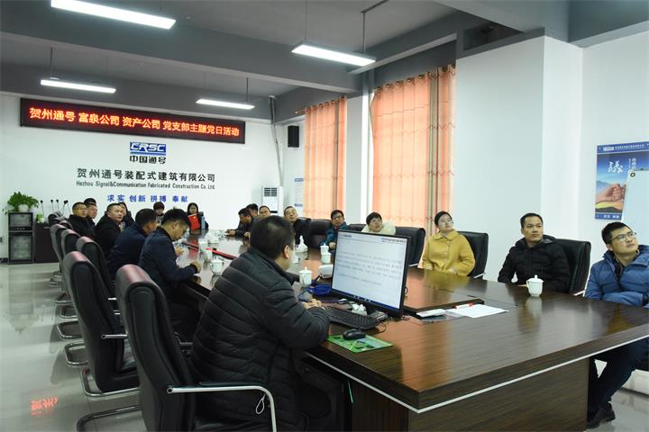 12月23日,贺州市富泉供水有限责任公司党支部、贺州市城投资产管理有限公司党支部、贺州通号装配式建筑有限公司党支部联合开展“党员走进PC构件生产基地、助推装配式建筑示范基地发展”主题党日活动。富泉公司党支部书记陈剑锋、资产公司党支部书记谢慈政、贺州通号党支部书记刘丰收及三个党支部全体党员、入党积极分子参加活动。
