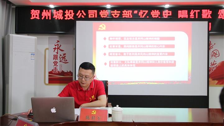 活动过程中,陈桂军为全体党员上了一堂题为《让井冈山精神放射出新的时代光芒》的微党课,陈桂军讲述了坚定信念、艰苦奋斗,实事求是、敢闯新路、依靠群众、勇于胜利的井冈山精神,激励广大党员干部在应对新形势下企业转型发展的机遇和挑战时,要传承好、弘扬好井冈山精神,充分发挥党员干部在重点工程、重要任务、重大创新中的先锋模范作用,在危机中育新机、于变局中开新局,让井冈山精神放射出新的时代光芒!