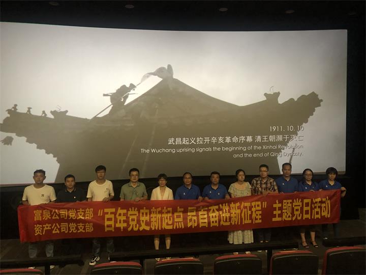 观展结束后,为进一步引导党员干部重温党史、传承精神、洗涤初心、勇担使命,以更加奋发有为的精神状态履行为民服务的初心,担负起新时代职责使命。富泉公司党支部、资产公司党支部全体党员一同走进电影院,观看了红色电影《1921》。该影片以时代“横截面”视角切入,聚焦1921年前后的故事,全景式重现了百年前波澜壮阔、开天辟地的历史时刻,讲述了一群来自五湖四海平均年龄仅28岁的热血青年们,突破国际各股复杂势力的监控和追踪,聚集上海召开中国共产党第一次代表大会,见证了中国共产党成立的历史故事。这次观影是一次令思想灵魂经受洗礼的生动党史学习教育课,对于党员体悟建党的艰辛历程,坚定理想信念,重温入党初心有着极为重要的意义。