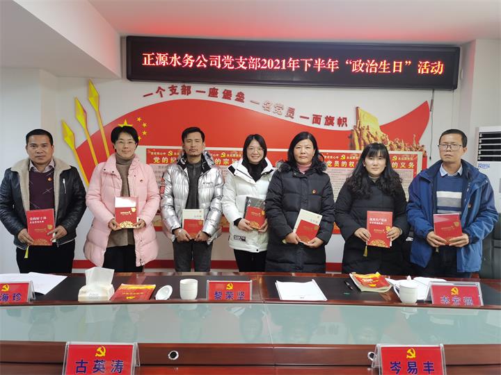为深入学习贯彻习近平新时代中国特色社会主义思想,锤炼忠诚干净担当的政治品格。2021年12月29日,正源水务公司党支部在二楼会议室召开12月党员大会。正源水务公司党支部宣传委员黎荣坚主持会议,全体党员、入党积极分子共20余人参加会议。