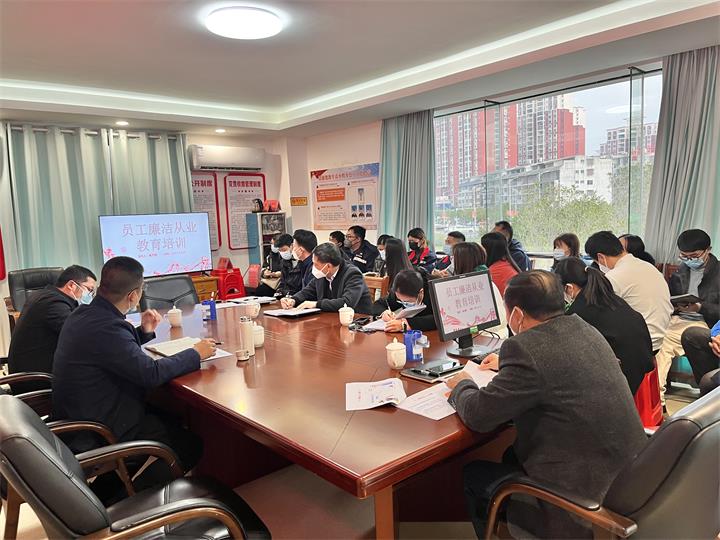 为充分发挥廉洁文化在反腐倡廉和作风建设中的作用,扎实推动廉洁文化向基层延伸,12月16日下午,能源公司开展了廉洁文化“进岗位”活动。公司党支部书记、执行董事、总经理黎荣坚主持活动,公司全体干部职工参加会议。