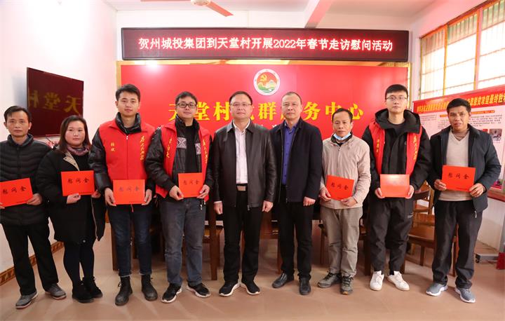 新春佳节将至,1月21日,城投集团党委书记、董事长黄俊,党委副书记、工会主席梁辉露一行走访慰问了帮扶联系村桂岭镇天堂村村委干部、驻村工作队员以及困难群众,向他们致以新年的问候和美好祝愿,为他们送去温暖和关怀。