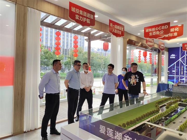 4月25日下午,市委宣传部副部长、市新闻出版局局长陆小毅到城投大厦售楼部调研,贺州城投公司总经理杨邦枢陪同调研。