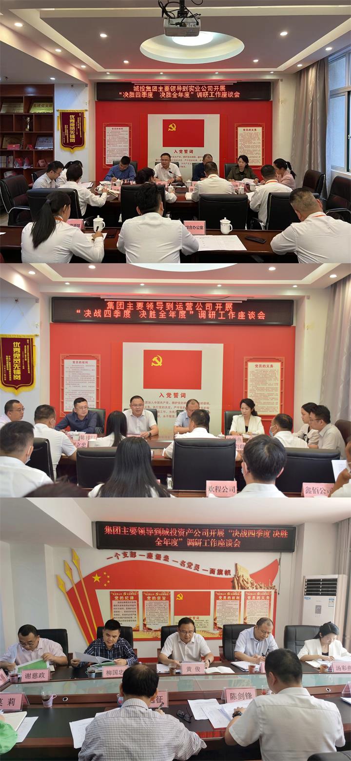 为深入了解集团各子公司生产经营等工作情况,掌握各项重点工作完成进度,确保全面完成集团全年各项任务目标,10月18日至20日,集团党委书记、董事长带队到各子公司开展“决战四季度 决胜全年度”调研,集团党委副书记、工会主席梁辉露,党委委员、副总经理陈桂军、柳国忠、黄辉,董事会秘书汤彩燕,总经理助理谢慈政,有关部门负责同志参加调研。