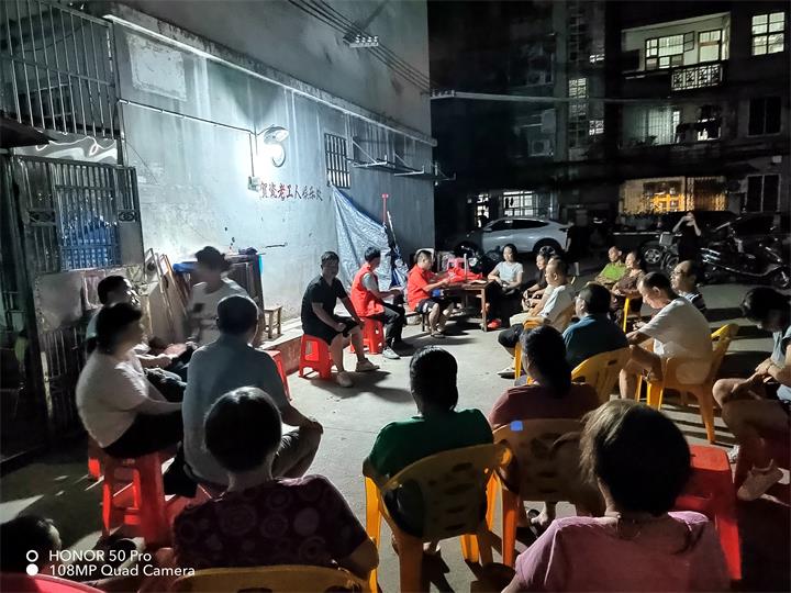 8月27日晚,贺州城投集团联合八步区林业局、光明社区等创城包联共建单位一起深入老陶瓷厂宿舍区召集住户代表就小区卫生环境、亮化、车位消防通道划定等问题召开座谈会。