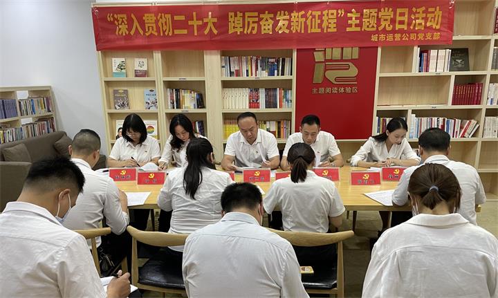 城投集团机关第一党支部在市人才公寓红湾阅读体验区开展“礼赞二十大 建功新时代”10月主题党日活动。活动以集中学习,开展主题研讨为主要形式,要求支部全体党员要提高站位,在思想上政治上行动上同以习近平同志为核心的党中央保持高度一致,紧跟伟大复兴领航人踔厉笃行。要认真领会,坚持学原文悟原理,准确把握精神实质,推动党的二十大精神落地生根。要学以致用,狠抓落实,进一步细化工作举措、压实责任,攻坚克难,切实把学习贯彻二十大精神的成果体现在推动工作、促进发展的实绩上,全力推动完成集团全年目标任务。