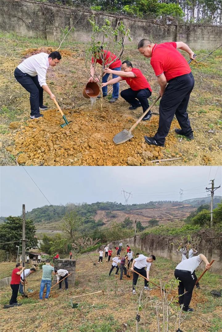 一年“植”计在于春,植树活动现场热火朝天,全体党员热情高涨、干劲十足,有的挥锹铲土、有的扶苗定根、有的培土踩实、有的浇水灌溉,到处都是忙碌的身影。经过一个多小时的劳作,大家齐心协力将一棵棵树苗“安家落户”,为水厂营造绿色环境。
