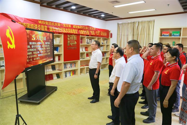 为深入学习贯彻党的二十大精神,进一步强化党员思想政治意识,激发党员干部干事创业精气神,5月30日,城投集团机关第一党支部、机关第二党支部联合开展“深化民族团结进步教育,铸牢中华民族共同体意识”主题党日暨“悦见·红湾”读书会活动。集团党委书记、董事长黄俊,集团领导班子成员吴泽莲、柳国忠、黄辉、邹雄斌、李桂山以普通党员身份参加活动。机关第一党支部书记汤彩燕主持会议。机关第二党支部书记谢慈政分享红色故事。