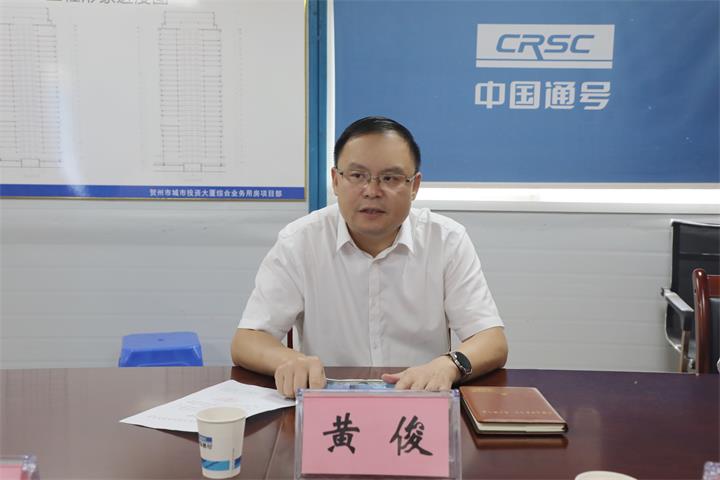 调研中,黄俊认真听取了城投大厦项目建设、销售、融资化债等情况汇报,详细了解当前项目在推进及销售等方面存在的问题,并提出指导性意见。黄俊指出,城投大厦项目是贺州市重点项目,是推进集团市场化转型的重要项目,当前项目推进处于关键环节,各参建单位要进一步提高政治站位,将城投大厦打造成贺州市地标性建筑。