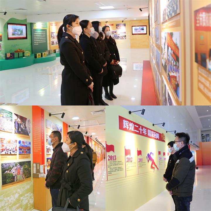 活动中,支部书记汤彩燕带领着党员们,跟随着讲解员逐一参观了贺州市建市二十周年经济社会发展成就展、东融发展成果展和书法美术摄影艺术作品展。一幅幅发展繁荣的照片、一件件记录发展变迁的实物,一段段呈现发展变化的视频,全方位、立体式展现了贺州的发展历程和各项事业取得的长足进步,吸引着党员们驻足观看和交流畅想。