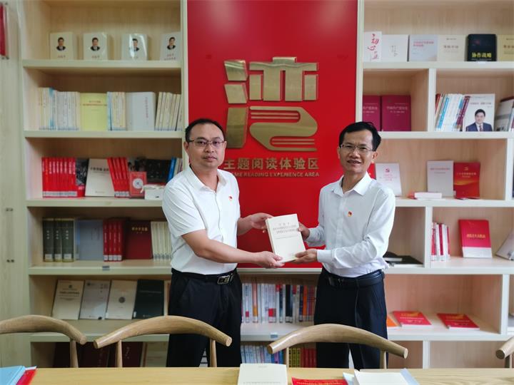 随后,全体干部职工在“红湾”阅读体验区集体静心阅读经典好书、好文,公司壮、瑶、汉等民族干部职工代表分享阅读感想、体会。李罗清还为党员干部赠送书籍。