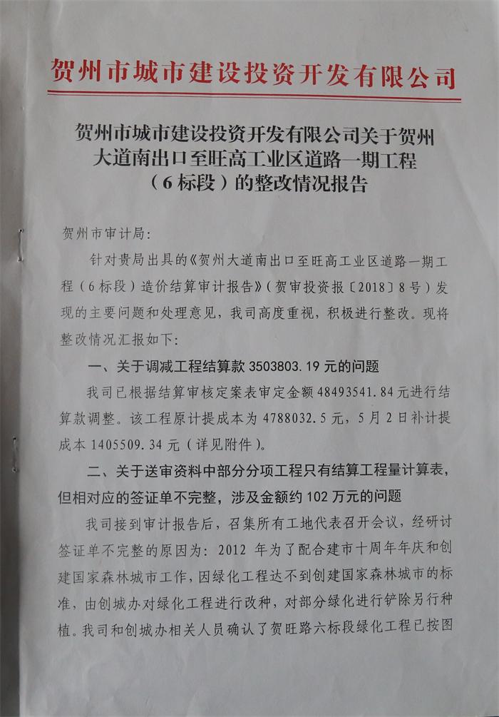 关于贺州大道南出口至望高工业区道路一期工程(6标段)的整改情况报告2018-07-13