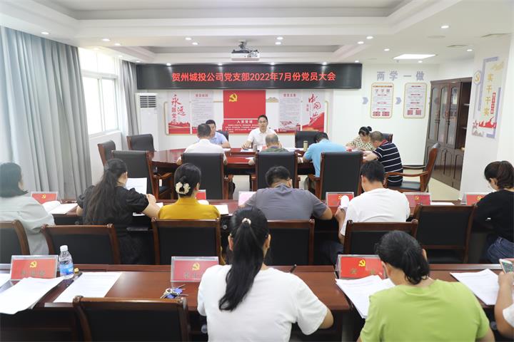 7月22日,城投公司党支部召开7月党员大会,公司党支部书记、董事长兰乾雄主持会议,公司党支部全体党员...
